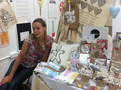 Melanie from Mellybee with her cute collection of tea towels, badges, totes and prints. I told her to "look crafty" - I think she's doing a good job!